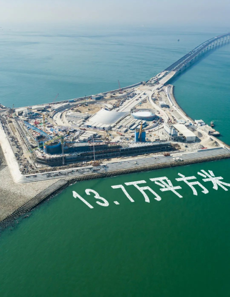 深中通道西人工島長625米,最寬處456米,島體面積13.7萬平方米,相當(dāng)于19個國際標(biāo)準(zhǔn)足球場大小,是當(dāng)今世界上鋼圓筒圍壁形成的最大人工島,承載著深中通道橋隧轉(zhuǎn)換的重要功能,是全線的先行工程、關(guān)鍵樞紐工程,被譽(yù)為粵港澳大灣區(qū)的“海中鯤鵬。
