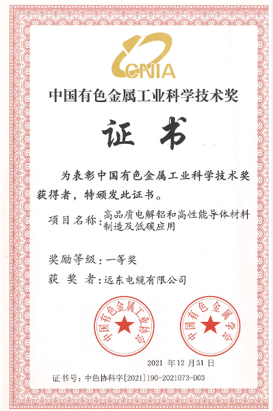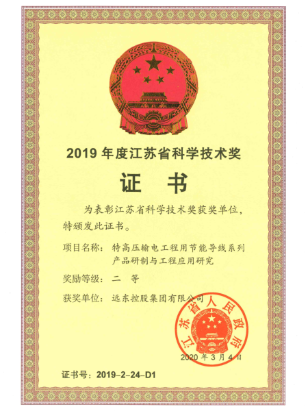 憑借強大的科研能力、技術(shù)水平和較好的社會經(jīng)濟效益,遠東電纜節(jié)能導(dǎo)線產(chǎn)品/技術(shù)還先后被授予中國專利優(yōu)秀獎、江蘇省科學(xué)技術(shù)獎、中國有色金屬工業(yè)科學(xué)技術(shù)一等獎等多個獎項。